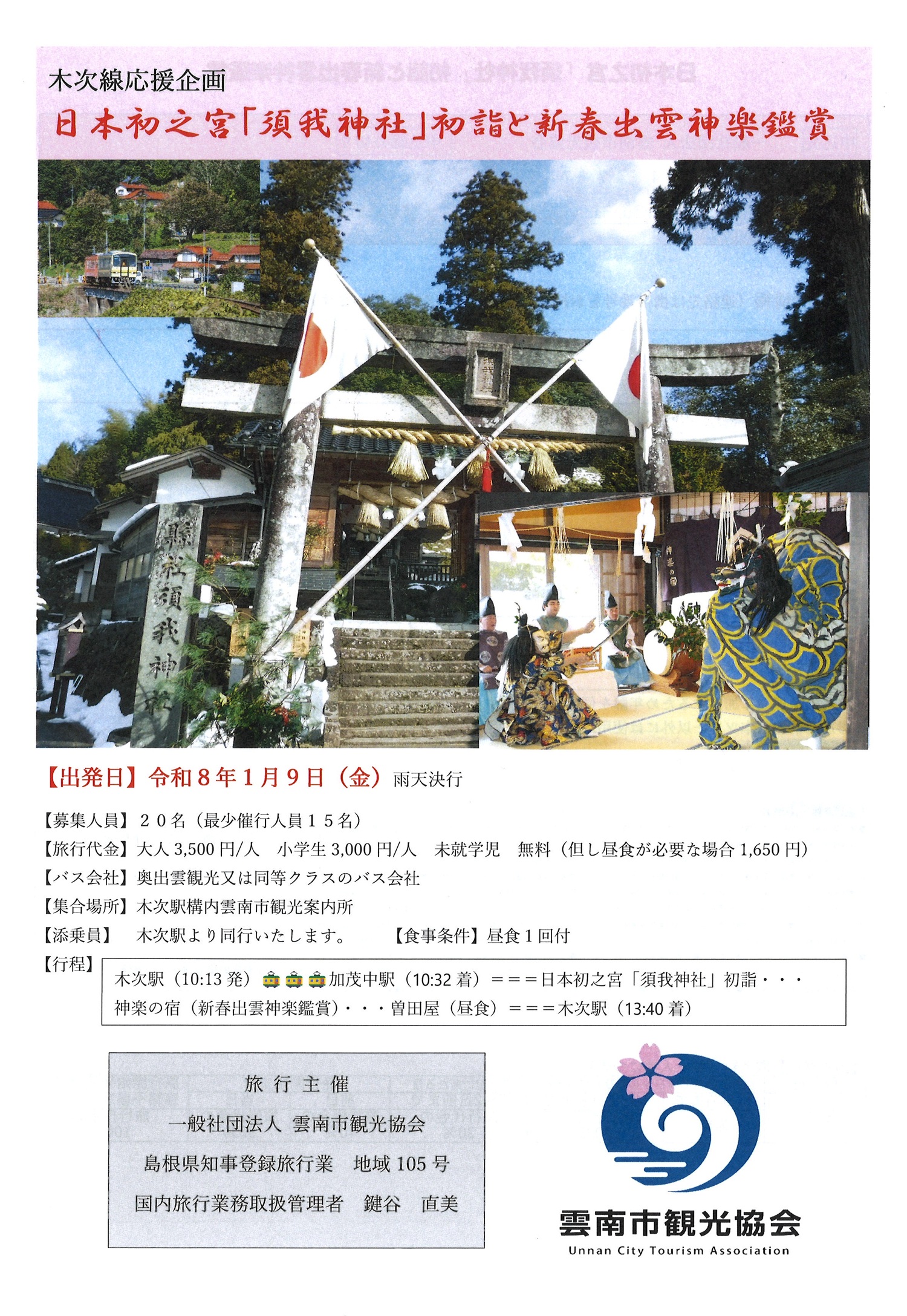 【日帰りツアー】木次線応援企画~日本初之宮「須我神社」初詣と新春出雲神楽鑑賞~