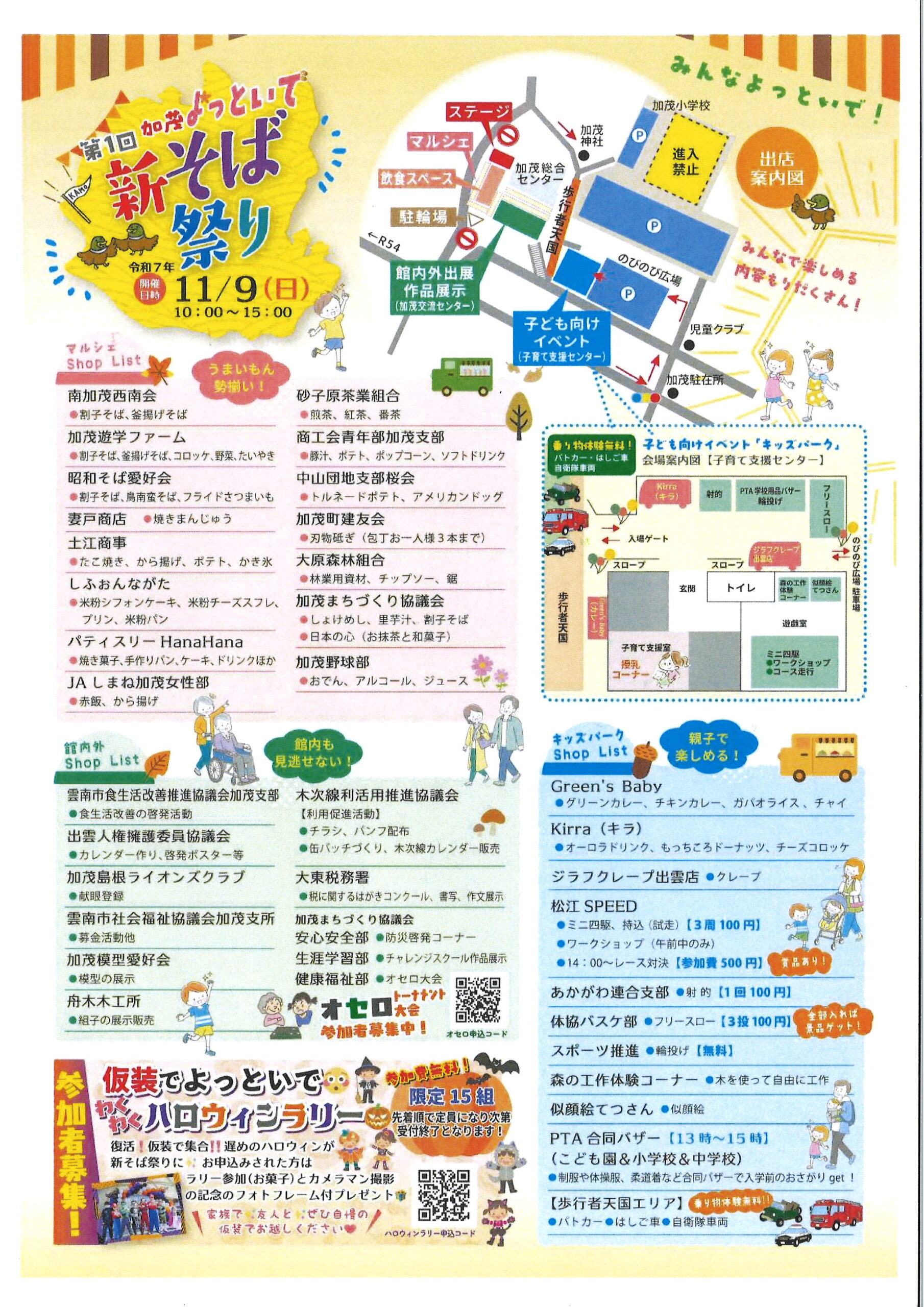 加茂よっといで新そば祭り実行委員会(加茂交流センター内)0854-49-8380