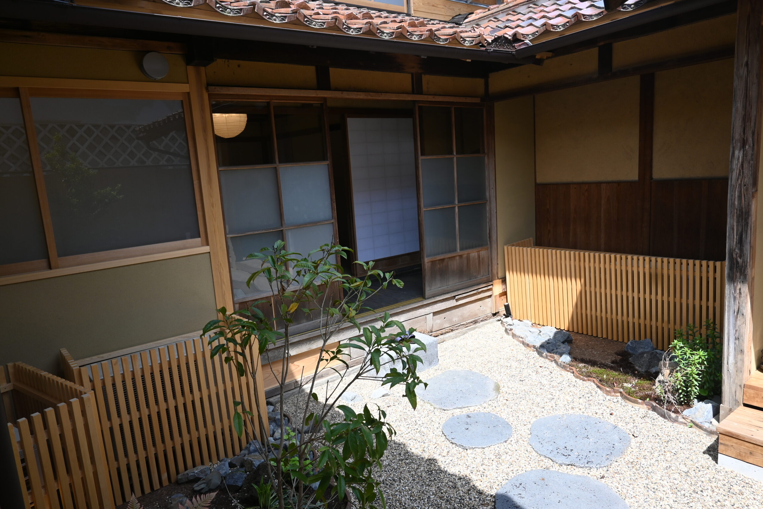 たたら経営者「田部家」に仕える人が住んでいた長屋を生かした空間。木造の長屋は、木と土を使ってリノベーションし、古き良き雰囲気を残しています。こちらの施設は、間取りの異なる2棟5室で構成されています。